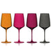Enjoy your wine in gorgeous multi-colored wine glasses. Crafted from European crystal, these stemmed wine glasses have a modern, angled silhouette with elegant stems and come in four striking hues: Smoke, Garnet, Berry, and Amber.