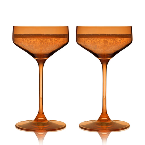 View full detailsCrafted from European crystal with a gorgeous amber hue, these coupe glasses bring a warm glow to shaken cocktails. Add some color to your glasswar...