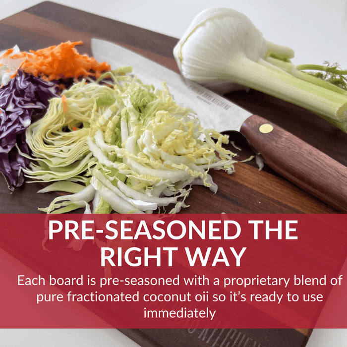 - Every board is preseasoned with our natural cutting board oil, so it is ready to use out of the box