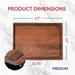 Our Medium Walnut Wood Cutting board measures 11 x 17 inches and 3/4 inches thick with a blood and juice groove on one side. Crafted by hand in the USA, using sustainably sourced American hardwood Walnut.
