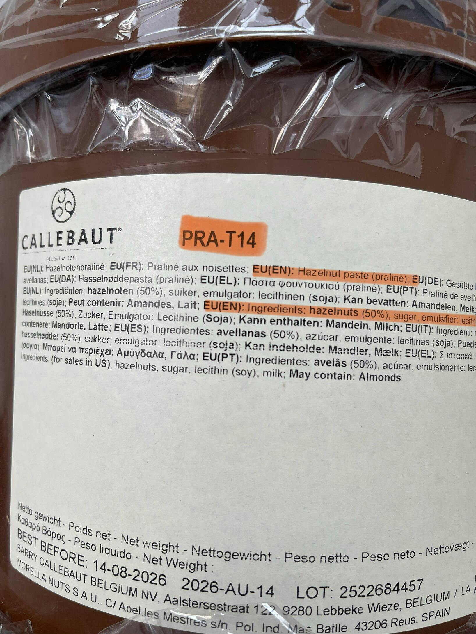 Elevate your confections with Callebaut Hazelnut Paste, crafted from 100% roasted hazelnuts and nothing else. This pure nut paste is smooth, aromatic, and intensely flavorful—perfect for premium pralines, gianduja, ganache, gelato, and pastry creams. Made by Callebaut, a trusted name in fine chocolate and nut-based ingredients, this 5kg pail delivers consistent quality for artisan chocolatiers, pastry chefs, and gelaterias.