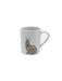 A fine icy white porcelain tea mug originally illustrated with a rabbit etching and wheel thrown in the USA.