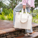 Dual Handle for Convenient Carrying - our reusable grocery bags feature both short handles for handheld convenience and long handles for over-the-shoulder carrying. The sturdy, double-stitched handles are designed for comfortable use, whether you're navigating the grocery aisle, heading to the farmers market, or transporting heavy loads from the car to your home