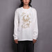 Limited run white long sleeve shirt by Chop Suey Club. The text on the shirt is a poem by 李商隐 Li Shangyin from the Tang dynasty. The poem goes: 雲母屏風燭影深,長河漸落曉星沈。嫦娥應悔偷靈藥,碧海青天夜夜心。On a mica screen, a candle casts dark shapes; the Milky Way slowly descends, the Morning Star is low. Chang'e must regret stealing the elixir of life; blue sea and blue sky, night after night in her heart.