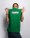 Green crewneck t-shirt with “麻將之夜 (Mahjong Night)” graphic printed in front.