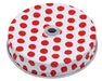 These straw hole lids are made of tin plated steel with a plastisol lining.