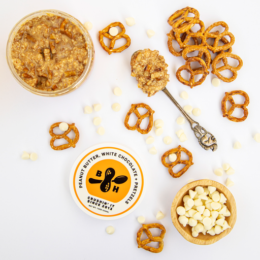 View full detailsPEANUT BUTTER, WHITE CHOCOLATE + PRETZELS Close your eyes. Imagine crunchy pretzel pieces swimming with silky smooth white chocolate chips in honey...