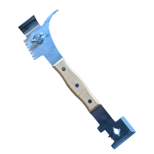 View full detailsMulti Function Hive Tool A durable, steel-and-hardwood multi-function hive tool that serves as a pry bar, nail puller, frame cleaner, hammer, and m...