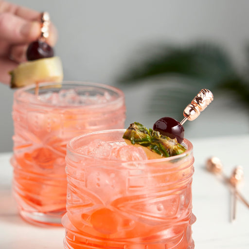 View full detailsAt once familiar and totally new, these tiki-inspired cocktail picks draw on sculptural motifs from the Pacific islands. Their metallic finish adds...