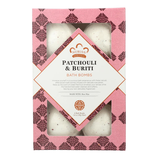 View full detailsAromatic Bath Bombs for Relaxation and Rejuvenation Indulge in a luxurious bath experience with Nubian Heritage's Patchouli & Buriti Aromather...