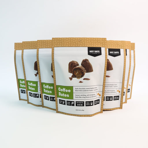 View full detailsDark chocolate coated Medjool dates filled with sunflower butter + espresso. Casual, exciting, & energizing. Feels like a hug from an o...