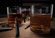 2nd Amendment American Flag Whiskey Glasses, Set of 4 Hand Blown Old Fashioned Whiskey Rocks Glasses, Wood Flag Tray with Patriots Gun Rights Law & Military Gift Set