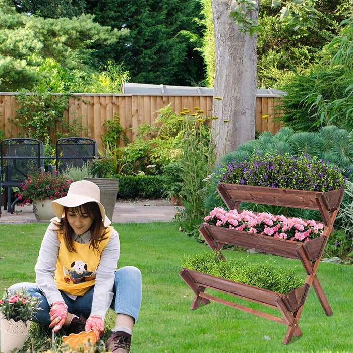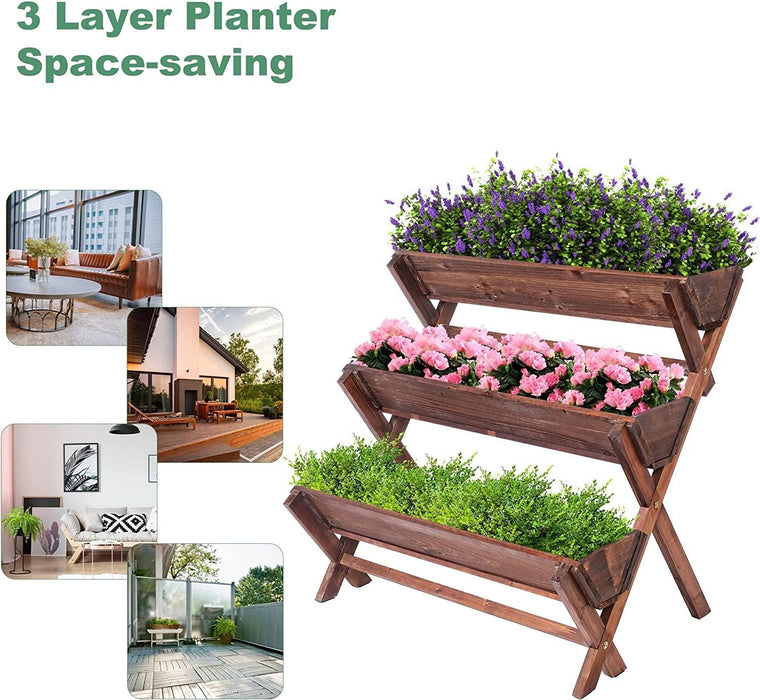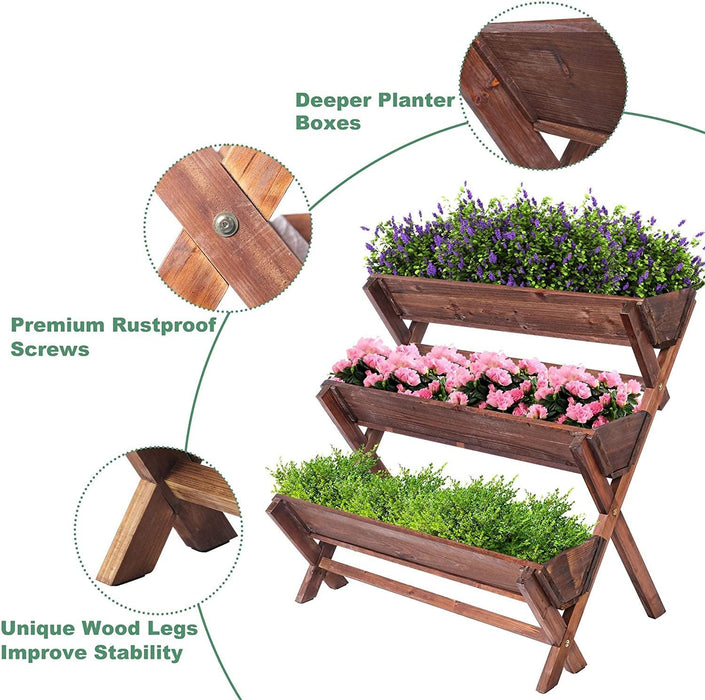 3 Tier Wooden Planter Box Container Freestanding Raised Garden Bed with Drain Holes