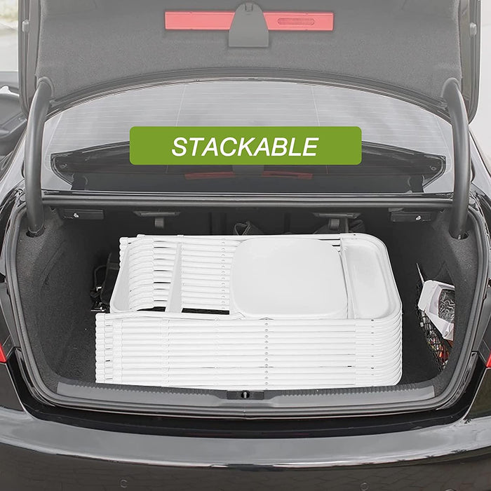 6 Pack White Plastic Foldable Chairs Party Chairs with Steel Frame, Support Up to 650 lbs