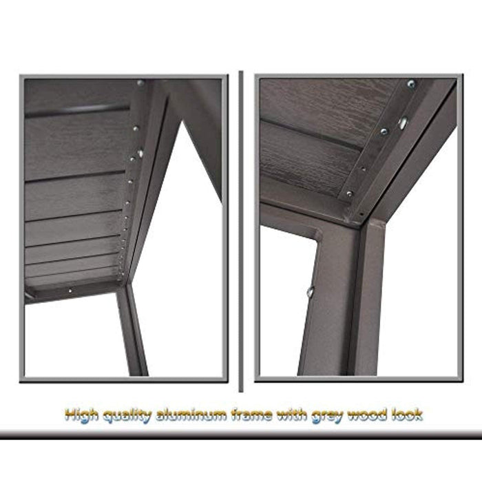 Bosonshop Picnic dining table is a great choice for any patio, backyard, garden, bistro! The grey wood look is suitable for your courtyard and chairs. It's easy to clean, waterproof and rustproof. Long enough to fit all of your guests comfortably or use it as a buffet-style serving table. Double layer frame design ensures this table is more sturdy and stable, but lightweight. Ideal for any backyard or patio, you will use this table for every event you host.