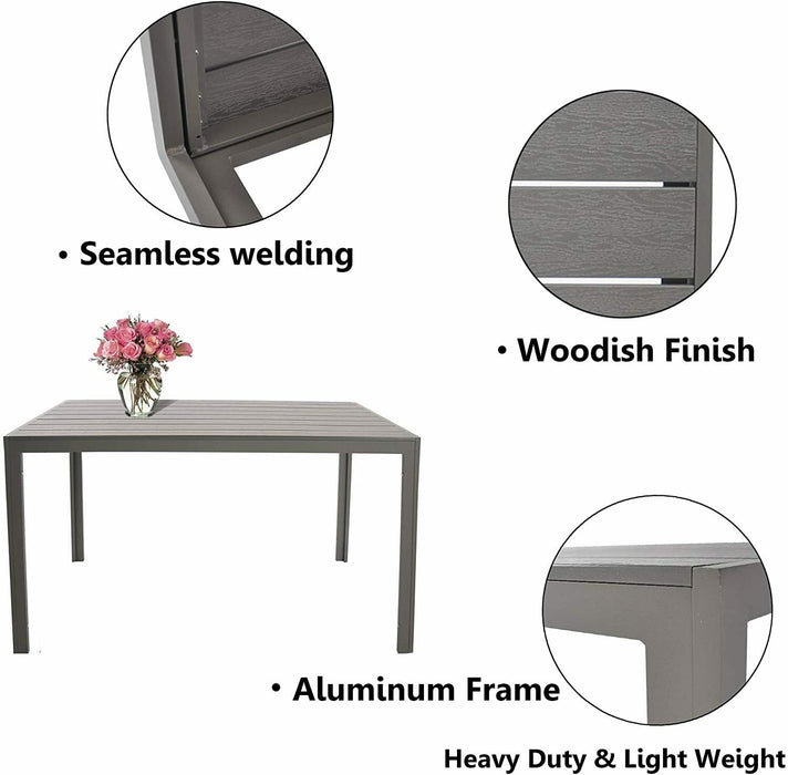 6 Person Outdoor Dining Table 55", Patio Rectangle Aluminum Table, Gray
