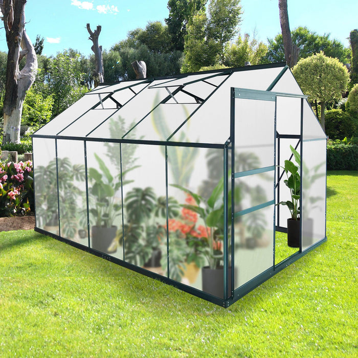 Heavy-Duty Aluminum Frame: The polycarbonate greenhouse is made of green powder-coated thickened aluminum which is rust-resistant and more sturdy to deal with all kinds of weather. The internally tight closure triangular structure can effectively improve the stability of the outdoor greenhouse to prevent it from falling apart under the harsh environment.