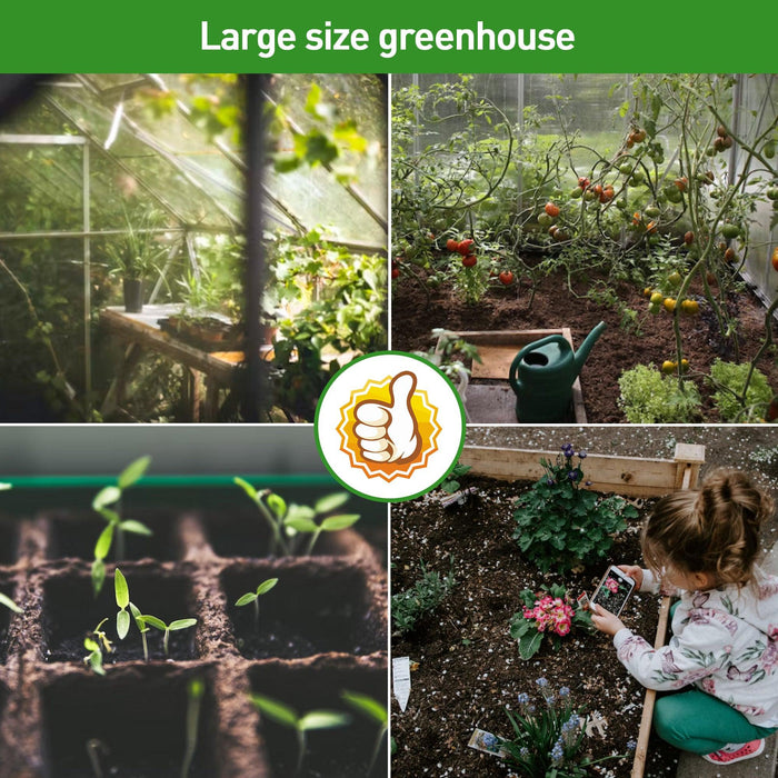 This large greenhouse walk is an efficient way to take care of your plants year-round! The outdoor garden greenhouse has a top vent and single hand push door, so getting good ventilation and access is a breeze. What's more, we include premium materials in the greenhouses for outdoor walking by an aluminum alloy frame and polycarbonate sheets, so it's durable and stable outside. This greenhouse is the perfect place to house your plant friends and grow them year-round!