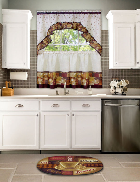 Achim Home Furnishings Coffee Tier And Swag Kitchen Curtain Set, 57 By 36-Inch, Brown