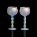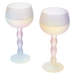 - A beautiful stemmed wine glass set of two glasses will be the perfect addition to your wine and entertaining collection! Add a touch of elegance to your barware with this set of two iridescent squiggle stemmed wine glasses. With an elegant shape and rainbow colored sandblasted glass, these glasses make a beautiful addition to any drink service. Whether you're entertaining guests or making a toast at a wedding, these stunning glasses are sure to impress!