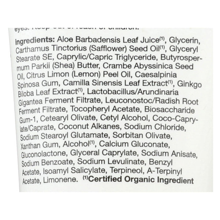 ingredients : aloe barbadensis leaf juice;¹;glycerin;carthamus tinctorius;safflower;seed oil;glyceryl stearate se;caprylic/capric triglyceride;butyrospermum parkii;shea;butter;crambe abyssinica seed oil;citrus limon;lemon;peel oil;caesalpinia spinosa gum;camilla sinensis leaf extract;ginkgo biloba leaf extract;lactobacillus/arundinaria gigantea ferment filtrate;leuconostoc/radish root ferment filtrate;tocopheryl acetate;biosaccharide gum-1;cetearyl olivate;cetyl alcohol;coco-caprylate/caprate;coconut alkanes;