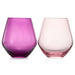 - In addition to being a stylish addition to your own collection, the Amethyst & Rose Colored Stemless Wine Glass Set makes a wonderful gift for any wine lover or anyone who appreciates beautiful glassware. The set of two glasses allows you to share the elegance and charm of these glasses with someone special. Whether it's a birthday, anniversary, or any occasion worth celebrating, these glasses will be cherished as a thoughtful and unique present.