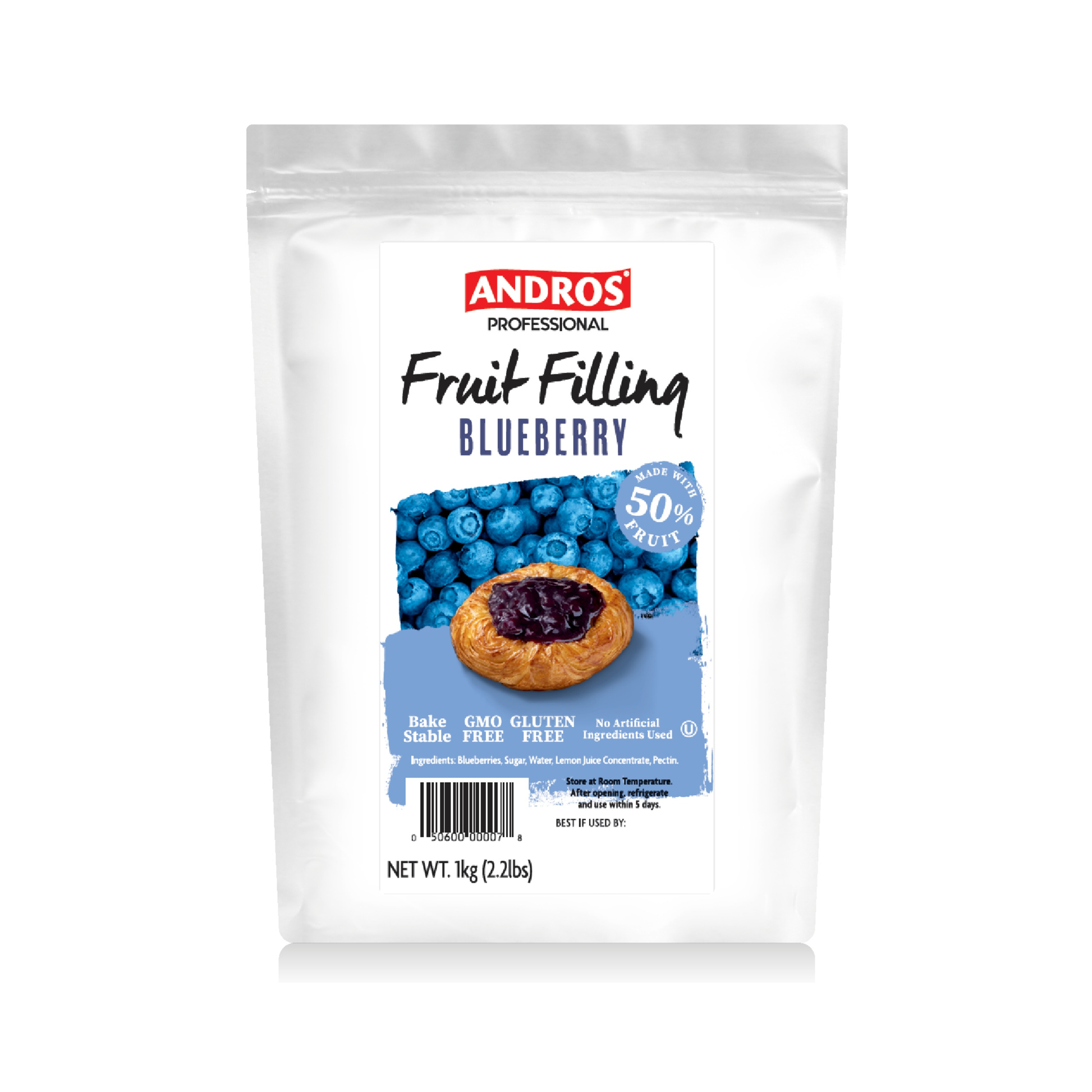 Bring a unique flavor to your recipes with Andros' Blueberry Fruit Filling. This all-natural four-ingredient preserve contains no flavoring, coloring, or artificial extracts. Baked into your favorite pastries, it's the perfect addition to Viennoiseries, Tarts, Muffins, and more! Trust Andros and its 70 years of expertise to add a delicious, natural touch to your creations.