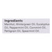 ingredients : menthol;wintergreen oil;eucalyptus oil;peppermint oil;cornmint oil;petitgrain oil;spearmint oil