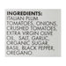 ingredients : italian plum tomatoes;onions;crushed tomatoes;extra virgin olive oil;salt;garlic;organic sugar;basil;black pepper;oregano
