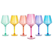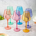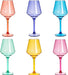 - This colored wine glass set is a perfect way to add some pizzazz and fun to your party or celebratory event. Be sure to add these to your next pool party, or outdoor soiree; they’re easy to clean after the big day. Whether you're hosting a party or need something to decorate your home with, these colored wine glasses will be perfect. These cups are durable enough to last a lifetime, but also look great as art in your home decor.