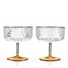 Draping glass and polished gold details give this stemmed glassware set Jazz Age flair. Made from high-quality glass with a gold-plated base, these coupes elevate any cocktail, shaken or stirred.