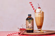 This all-natural root beer syrup is brewed with genuine sarsaparilla root and hand-crushed and toasted spices, and sweetened with cane sugars and molasses. We add whole-bean vanilla extract for a creamy, complex finish. The warming spices match beautifully with bourbons and rums, and the star anise works well with absinthe. Enjoy plain with sparkling water, or, simply drizzle it over ice cream.
