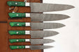 Handmade Damascus Kitchen Knife Set of 6, Green Wood Handle Chef Knife Collection, Full Tang Forged Damascus Steel Culinary Knife Set, Professional Cooking Knife Gift Set