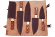 - Full tang Damascus chef knife set with leather roll
