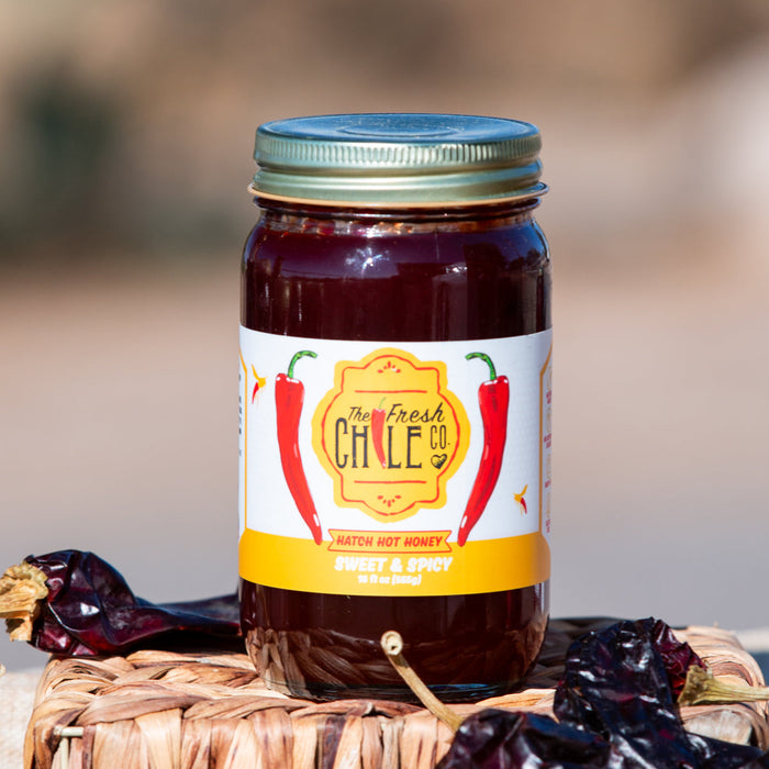 Sweet Meets Heat: A Mesilla Valley Delight! We make this product by infusing real Sun-Dried Hatch Red Chile into 100% local Mesilla Valley honey from Clayshulte farms. It's the same wonderful honey you've bought from us in the past. Only now, we have infused this honey with our wonderful Hatch Red Chile. This Hot Honey is thick and rich, with just enough heat to make everything you put it on a little better! Try it on fried chicken, biscuits in the morning, any kind of pizza, or pour it over a block of cream cheese. Or, just eat it with a spoon. You're going to love it.