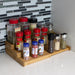 A perfect solution to accommodate your growing spice and seasoning collection, the three step shelf doubles in size from 8.75 inches to 14.75 inches when fully expanded. Slide out both ends to use its full size. Or compress each end to fit your space. The tiered design makes it easy to see each jar, eliminating the hassle of having to dig through a deep cupboard or cabinet. Beyond the kitchen you can use this step seasoning as a decorative display shelf for your treasured trinkets, collectibles, bath essentials and accessories. MATERIAL: Bamboo. SIZE: 8.25x8.75x3.25 Inches. COLOR: Natural