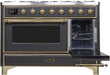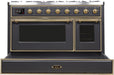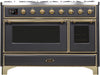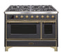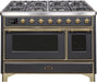 Ilve Majestic II 48 Inch Dual Fuel Natural Gas Freestanding Range in Matte Graphite with Brass Trim UM12FDNS3MGG