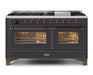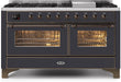 ILVE Majestic II 60" Dual Fuel Natural Gas Freestanding Range, Matte Graphite, Bronze Trim UM15FDNS3MGB