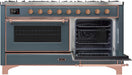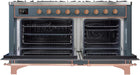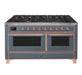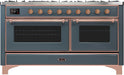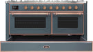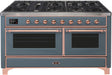 ILVE Majestic II 60 Inch Dual Fuel Natural Gas Freestanding Range, Blue Grey, Copper Trim, UM15FDNS3BGP