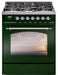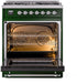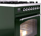 ILVE Nostalgie II 30" Dual Fuel Natural Gas Range, Emerald Green, Chrome Trim UP30NMPEGC