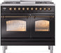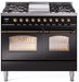 ILVE Nostalgie II 40" Dual Fuel Liquid Propane Range, Glossy Black, Bronze Trim UPD40FNMPBKBLP