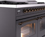 ILVE Nostalgie II 40" Dual Fuel Natural Gas Range, Matte Graphite, Bronze Trim UPD40FNMPMGB