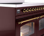 ILVE Nostalgie II 40" Electric Range, Burgundy, Brass Trim UPDI406NMPBUG