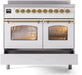 ILVE Nostalgie II 40" Electric Range, White, Brass Trim UPDI406NMPWHG