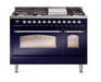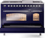 ILVE Nostalgie II 48" Dual Fuel Natural Gas Range, Blue, Chrome Trim UP48FNMPMBC