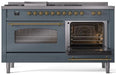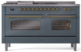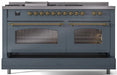ILVE Nostalgie II 60" Dual Fuel Natural Gas Range, Blue Grey, Brass Trim UP60FSNMPBGG