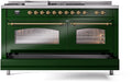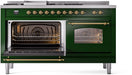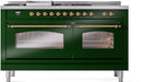 ILVE Nostalgie II 60" Dual Fuel Natural Gas Range, Emerald Green, Brass Trim UP60FSNMPEGG