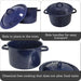 - Blue Enamel Exterior: The vibrant blue enamel exterior adds a splash of color to your kitchen and complements your cookware collection.