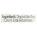 This juice contains only one ingredient: organic red tart cherry juice concentrate. No artificial flavors, colors, or preservatives are added.