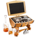 Large Display Whiskey & Wine Decanter with Antique Ship - Handcrafted Wood Barrel Storage - Wine Savant Decanters Gifts Set with 2 Glasses, & Drink Chiller Stones for Your Bar - 16" x 8" x 15"